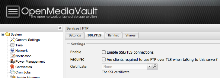 OpenMediaVault enthält neben zahlreichen weiteren Diensten unter anderem einen FTP-Server. Dieser lässt sich sogar mit SSL/TLS verwenden. In diesem Artikel geht es zum einen um das prinzipielle verfügbar machen des FTP-Servers als auch die Verwendung von SSL/TLS zur Absicherung der FTP-Kommunikation.