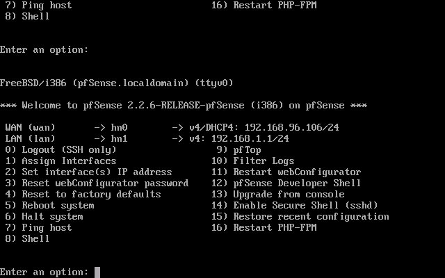 pfSense - ConsoleBesser ist’s natürlich, wenn ein Monitor angeschlossen ist, damit man Meldungen ablesen kann. Man könnte selbstverständlich auch einfach mal die pfSense neu starten (Menüpunkt “5) Reboot system”) oder kurz den Stecker ziehen. Bei vielen Mitarbeitern vor Ort oder verbundenen VPN-Benutzern hat man dann allerdings ganz schnell viele neue Freunde.