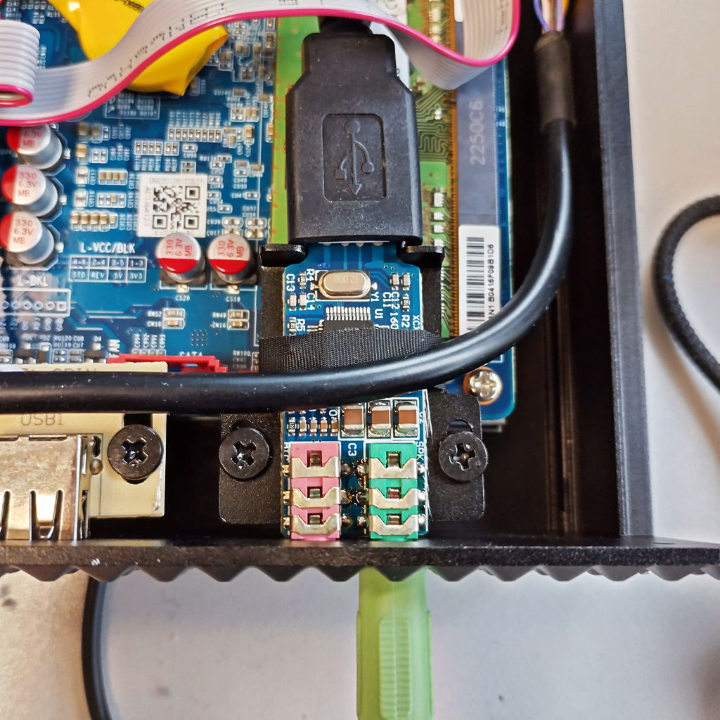 Tipp: Diese Platinen ist eine USB-Soundkarte. Bevor man das Ganze zurück baut zur Sicherheit an einem PC testen ob alles funktioniert.
