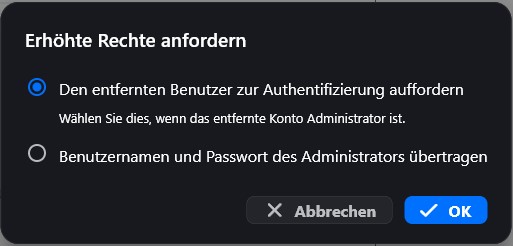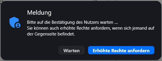 Während einer Sitzung können erhöhte Rechte angefordert werden:
