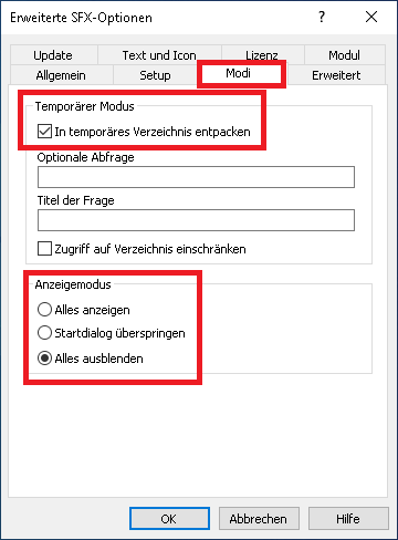 Nun in WinRAR ein neues SFX-Archiv mit folgendem Inhalt