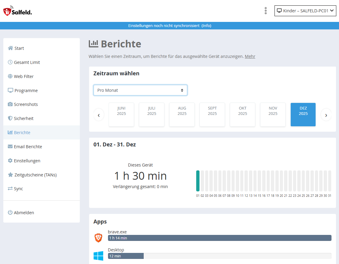 Für die Eltern gibt es ein umfangreiches Reporting, welche Apps oder Internetseiten wann wie oft und wie lange genutzt wurden und wie lange ein Gerät in Gebrauch war.