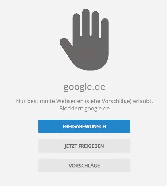 In der Vorgabewenn man nur zugelassen Seiten aufrufen kann funktioniert bereits Google nicht. Dies wird wie folgt dargestellt: