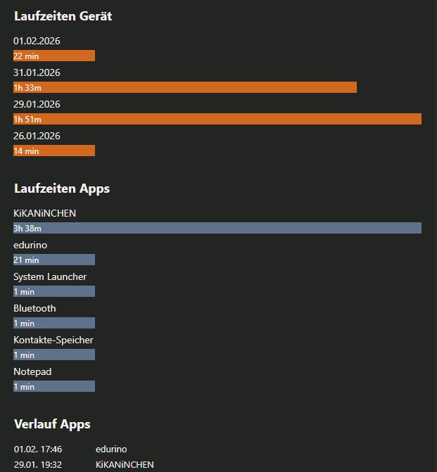 Unter diesem Menüpunkt kann die Nutzung des ausgewählten Geräts eingesehen werden: