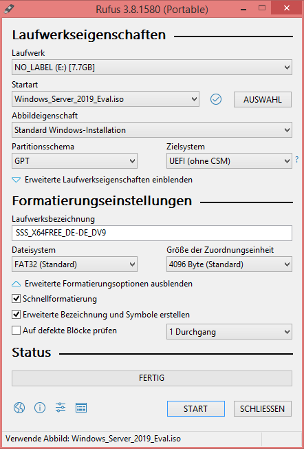 Im Netz finden sich einige Anleitungen wie man mehr oder weniger aufwendig einen bootfähigen USB-Stick für die Installation von Windows Server 2019 erstellen kann.