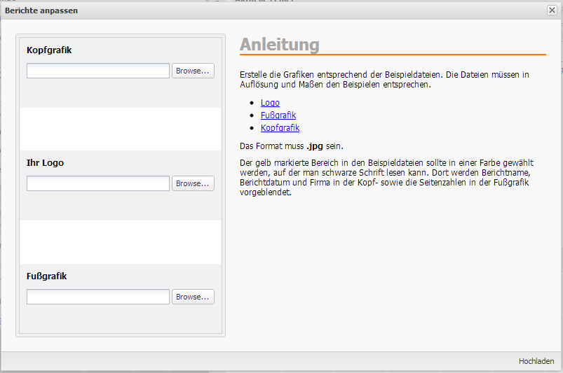 Im Zuge der Corporate Identity können Berichte ein Stück weit angepasst werden. Das bezieht sich auf das Logo, die Kopf- und Fusszeile.