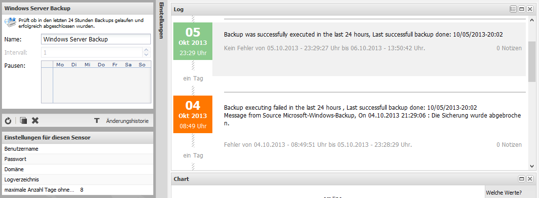 Für den Sensor spielt es am Beispiel der Windows Server-Sicherung ab Windows Server 2008 keine Rolle, ob die Datensicherung über die grafische Oberfläche oder mittels des Befehls “wbadmin” eingerichtet bzw. ausgeführt wird.