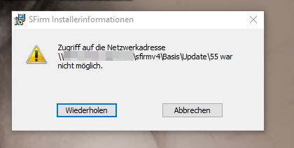 Bei einem Kunden kam nach dem SFirm-Update auf Version 4 Patch 24.06 (Build 7131) auf einem Arbeitsplatz plötzlich folgende Meldung beim Anmelden:
