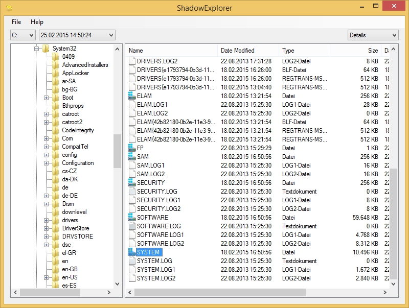 So wurde es Zeit für Plan B. Da man relativ sicher davon ausgehen konnte, das es nur ein Problem von Windows ist und die Dateisystemprüfung positiv verlaufen war, blieb nur noch die Registry über bzw. der “SYSTEM”-Teil davon. Da Windows, sofern nicht manuell deaktiviert, von selbst Wiederherstellungspunkte anlegt, musste aus einem dieser Punkte die entsprechende Datei extrahiert werden.