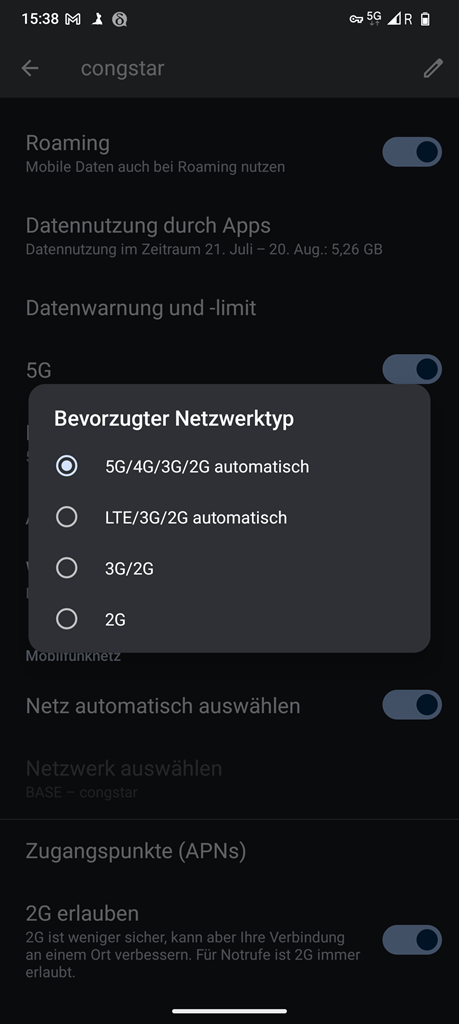 Ein Blick in den Status der Geräte zeigte, das diese keine IP-Adresse vom Provider erhalten hatten. Je nach Gerät half entweder mal den Flugmodus kurz zu aktivieren und wieder zu deaktivieren, oft musste zudem in den Android-Einstellungen mitunter “5G” deaktiviert und/oder bei “Bevorzugter Netzwerktyp” von “5G/4G/3G/2G automatisch” auf “LTE/3G/2G automatisch” gewechselt werden. Mitunter half auch nur ein Neustart. Im schlimmsten Fall sogar eine Kombination aus allen drei.