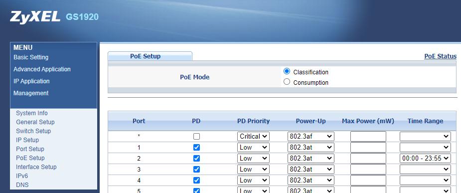 - Unter “Basic Setting – PoE Setup” auf “PoE Setup” klicken.