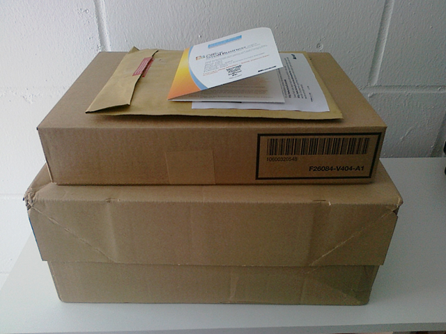 Soviel zum Thema Recycling und Müllvermeidung. Ich mache hier gerade ein Notebook zurecht und der Kunde möchte dazu ein Microsoft Office haben. Alles kein Problem. Bestellt, geliefert. Aber irgendwie schon verrückt, welche Verpackungs-Richtlinie hier zur Anwendung kam. Nur zur Erklärung: Das kleineste Teil oben ist die Office Lizenz, also der eigentliche Artikel. Der Rest ist nur die Umverpackung der Umverpackung usw.