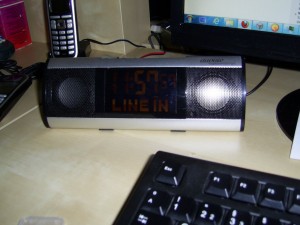Zurück zum Thema. Also beim Auvisio MPS-440 handelt es sich um eine kleine, portable 3-in-1 Musikanlage. D.h. ganz klassisch ist ein Radio onboard, man kann Musik vom USB-Stick oder von einer SD-karte wiedergeben. Einen Line-Eingang gibt’s auch. Wer möchte kann das Teil auch als Wecker verwenden.