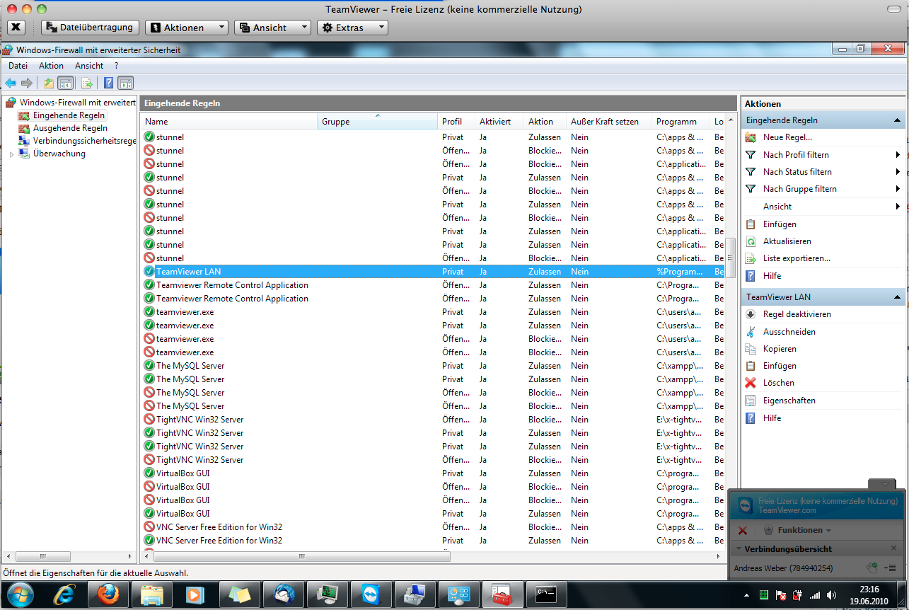 – Sofern auf den Computern, die erreicht werden sollen, eine Firewall aktiv ist, muss der Port 5938 (TCP) für eingehende Verbindungen konfiguriert werden.