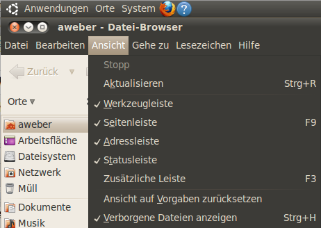 – Unter Ansicht Verborgene Dateien anzeigen aktiveren oder Strg+H drücken.