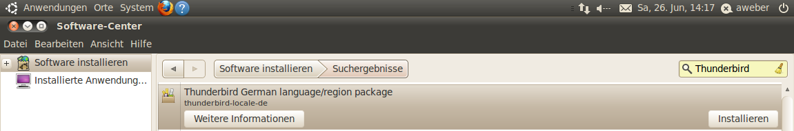 – Thunderbird-Sprachpaket über das Software-Center installieren.