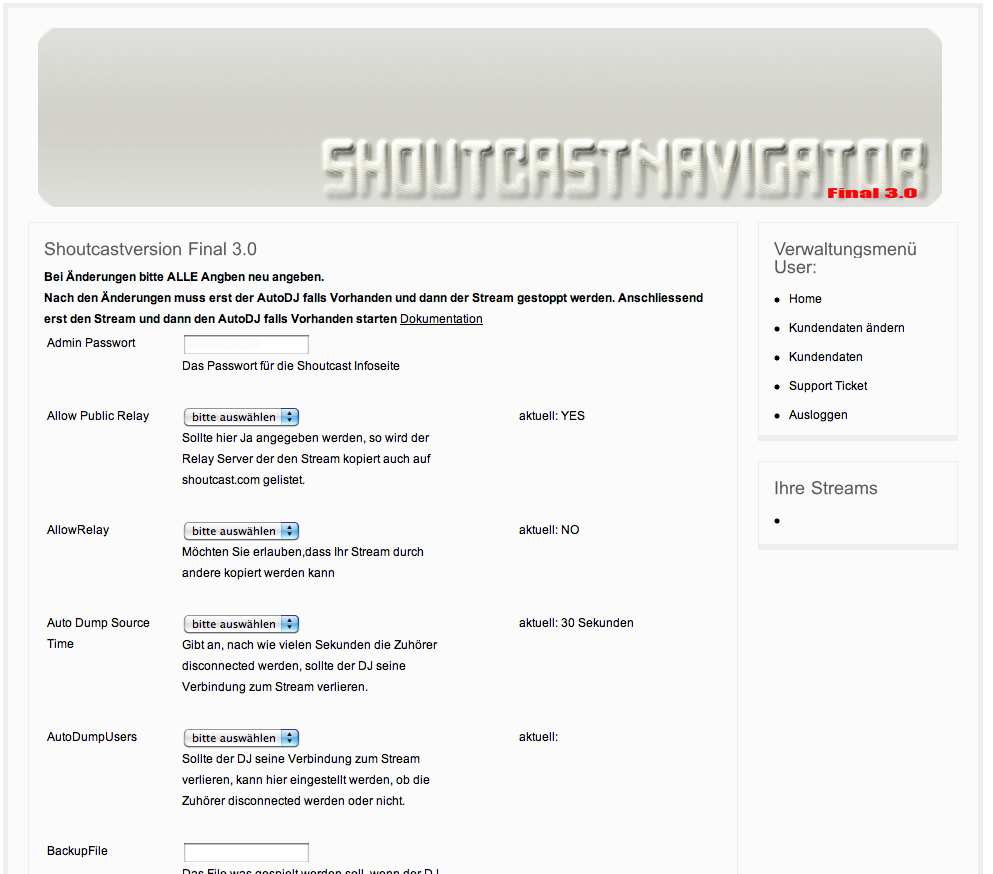 Es gibt da draussen eine Menge schwarzer Schaafe in Sachen Shoutcast-Streaming/Hosting. Sei es das Sie einfach unzuverlässig sind, kein Support bieten oder schlichtweg Betrüger und Abzocker sind. Hab’ das leider selbst mal erlebt. Einschreiben die nicht angenommen werden, Anwalt usw. das volle Programm.