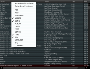 Ist die erste Spalte der ARTIST, so wird alphabetisch von A-Z sortiert. Ist die erste Spalte BPM so wird von langsam bis schnell sortiert. Usw.