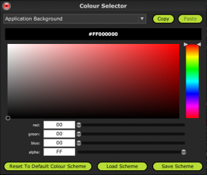 Zuerst wählt man den Teil der Oberfläche aus, den man ändern möchte. Dann stellt man die Farbe ein. Die Änderung wird direkt nicht nur im Colour Selector sondern auch in der Oberfläche von Touch DVS angezeigt und ist sofort wirksam. Darüber hinaus lassen sich Colour Schemes abspeichern und öffnen. Das Zurücksetzen auf das Default Colour Scheme ist ebenfalls möglich.