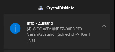Man erlebt manchmal schon seltsame Sachen, so wie dieses Mal: Während des Kopierens von Daten zwischen zwei USB-Festplatten meldete CrystalDiskInfo für eine dritte, nicht in den Kopiervorgang involvierte, USB-Festplatte das sich deren Zustand von gut zu schlecht verändert hätte.