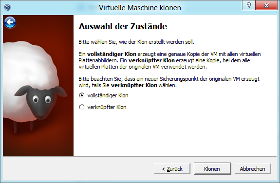 VirtualBox bietet eine schnelle und einfache Möglichkeit, virtuelle Maschinen zu Klonen. Das ist für Tests sehr hilfreich, spart man doch viel Zeit, wenn nicht jedesmal das Betriebssystem neu installiert und per Updates auf den neuesten Stand gebracht werden muss.