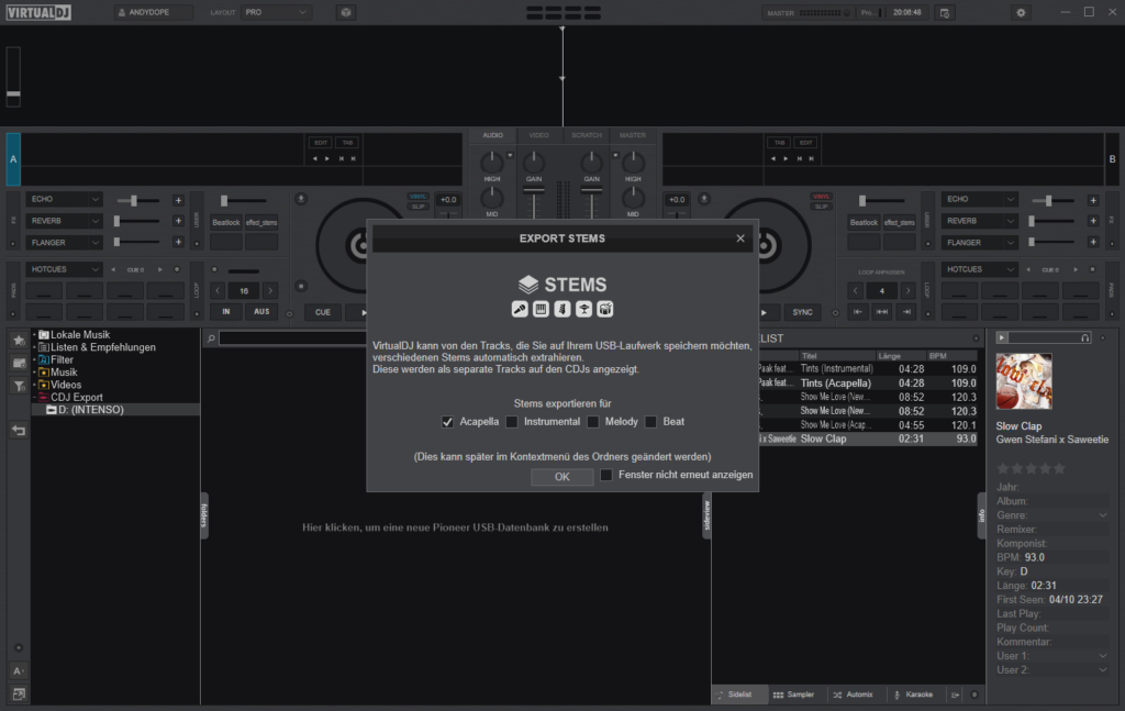 -CDJ Export: prepare and export to a USB-stick directly from VirtualDJ, including automatic stem separation, to play on any CDJ without your laptop