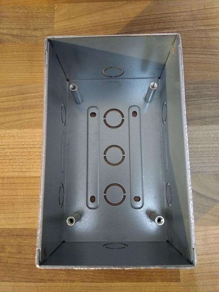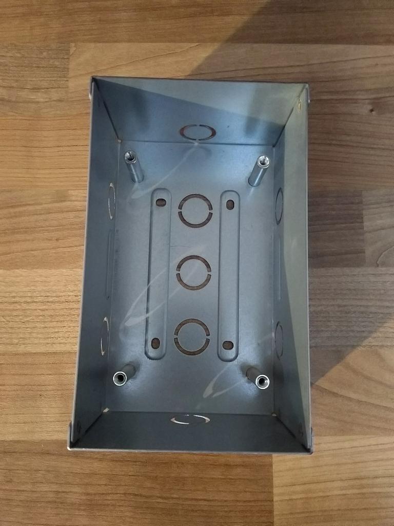 Das wiederum geht zwar an der Tür bzw. Mauerwerk im 45° Winkel direkt an der Kante ohne größere Probleme, aber das Gehäuse war nunmal für Unter- und nicht Aufputz gedacht. So montiert würden die Seiten herausschauen und diverse Kabelöffnungen, die zwar unbenutzt sind, unschön sichtbar sein. Ferner wären diese eine Einladung an Insekten und Schmutz ins Gehäuse zu kommen.