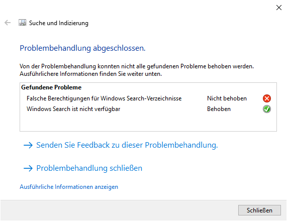 Die Bordmittel aus der Einstellungen-App (“Update und Sicherheit – Problembehandlung”) führten einem nur vor Augen, das es unlösbare Probleme gibt. Naja, soweit war ich dann auch schon.
