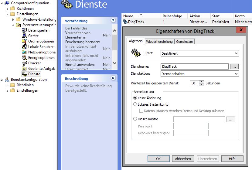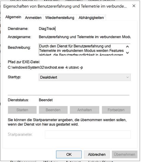 Wäre es nicht schlau, über die Aufgabenplanung bei jedem Systemstart die Zeile “net stop diagtrack” auszuführen? Dann kann man sicher sein, dass es immer aktiv ist.