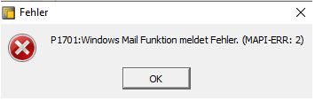Wenn ich aus der AB meines kunden heraus auf einen PDF Drucker drucke, der via MAPI mit dem Standard Mailclient (Tobit David) kommuniziert bekomme ich obige Fehlermeldung.