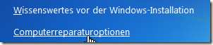 Im Windows installieren – Dialog auf Computerreparaturoptionen klicken.