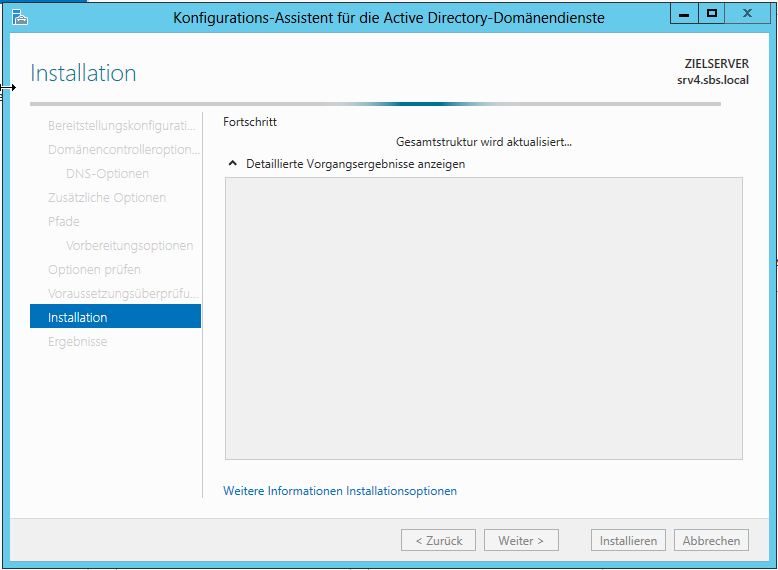 - Den Assistenten zum Hochstufen ausführen und den Server als weiteren Domänencontroller zur bestehende Gesamtstruktur und Domäne hinzufügen.