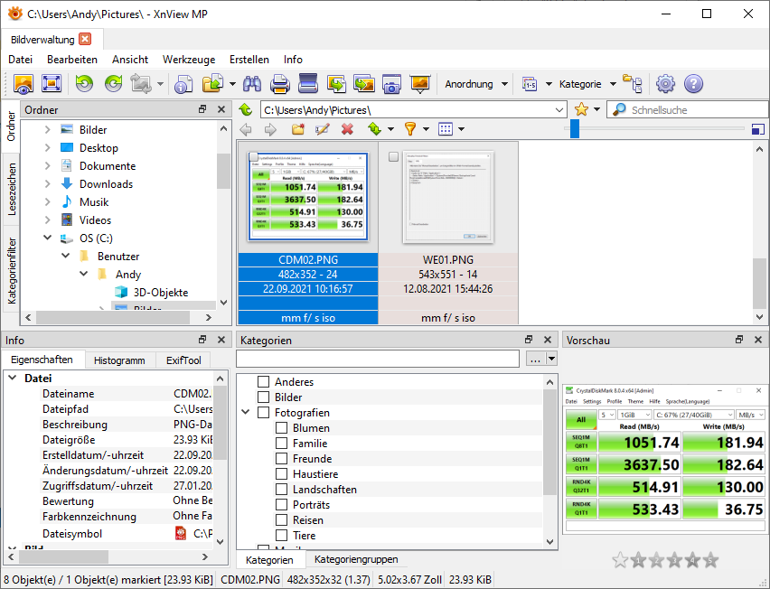 XnView dürfte vielen neben IrfanView bekannt sein. Neben der nur für Windows verfügbaren Classic-Ausgabe gibt es XnView MP für die Betriebssysteme Linux, MacOS und Windows und ist bei Neuinstallationen zu bevorzugen. Für die private Nutzung kostenlos, beginnt die Einzellizenz bei 29,00 €. Staffelpreise sind verfügbar. Vom gleichen Anbieter gibt es zudem weitere Werkzeuge, z.B. für das Konvertieren von Bildformaten.