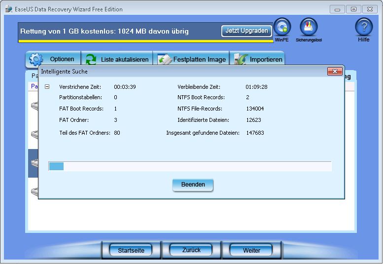 Von Vorteil ist, wenn vielleicht auch nicht in diesem Fall, das man Daten bis 1024 MB, also 1 GB, kostenfrei wiederherstellen kann. Danach bleibt nur das Upgrade auf eine kostenpflichtige Edition des Anbieters.