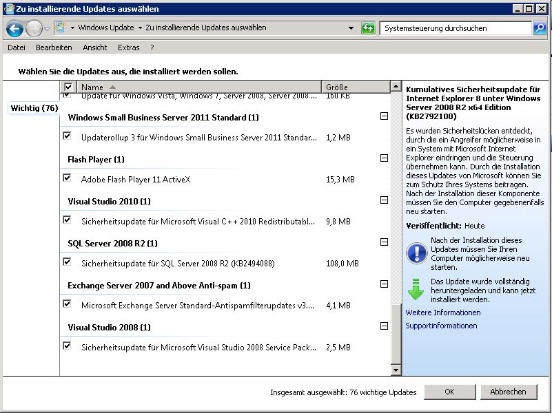 Sobald der WSUS-Client sich beim Server gemeldet hat, bekommt er das entsprechende Programm oder das Update angeboten. Im nachfolgenden Screenshot wird nun der Adobe Flash Player angezeigt.