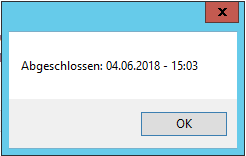 Nachdem das zuvor genannte Fenster verschwunden ist, erscheint eine schmucklose MessageBox mit dem Zeitpunkt des Abschlusses: