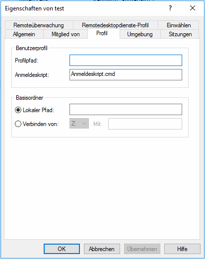 - In den Eigentschaften der Benutzerkonten kann dann schlicht der Name des Anmeldeskripts hinterlegt werden: