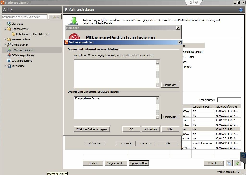 MailStore Server - MDaemon - Freigebene Ordner ausschliessen