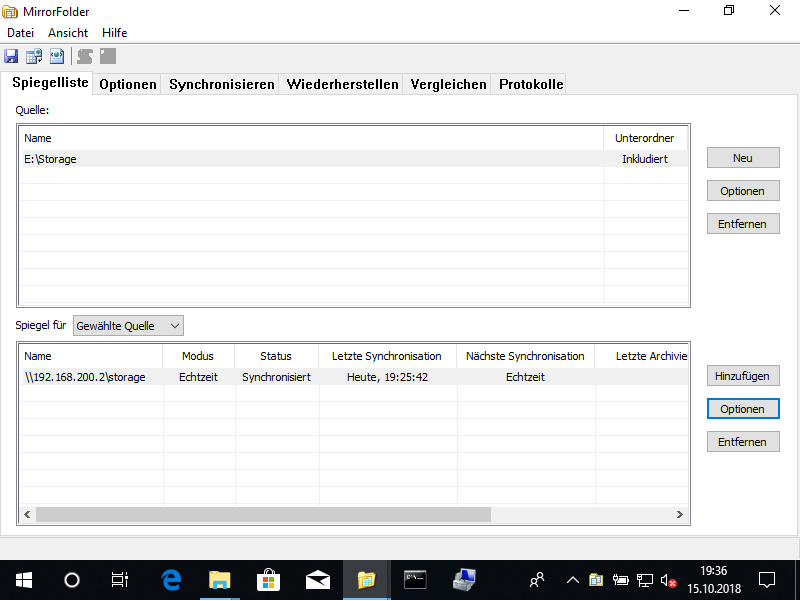 Beides und noch mehr gibt es für schmales Geld mit dem Tool MirrorFolder von Techsoft. Klassische Synchronisation, nach Interval, beim Starten oder Herunterfahren oder eben in Echtzeit mit und ohne auf Block-Ebene, alles drin. Die eingangs erwähnten Features gibt es bei MirrorList im “RAID-1”-Modus.