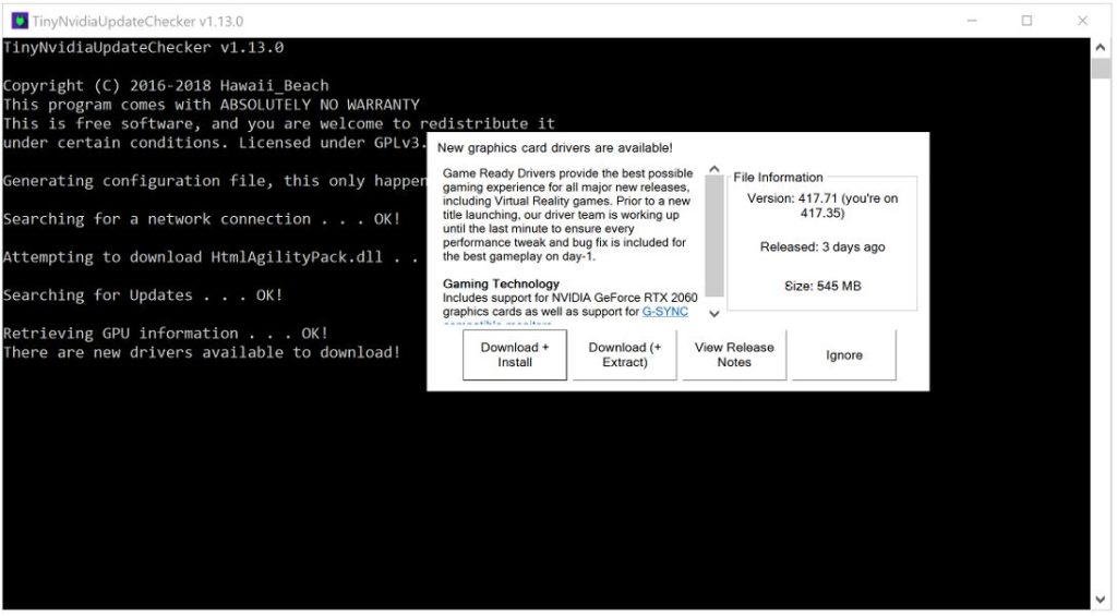 Getestet habe ich das nicht. Alternativ kann man den TinyNvidiaUpdateChecker benutzen: