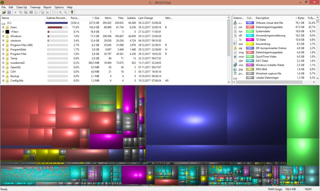 Letztlich zählt das Ergebnis und da Schenken sich beide Tools nicht viel. Ob man die grafische Darstellung der Belegung gebrauchen kann muss jeder für sich entscheiden. Mir persönlich genügt die Anzeige der Ordner- und Dateigrößen und die Sortierung in absteigender Reihenfolge. Dies ist meist bei der Suche nach einem Übeltäter, der zuviel Platz braucht sehr hilfreich.