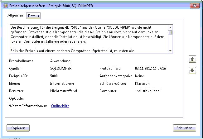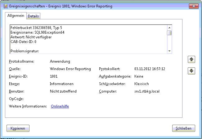 In den Logs des SQL-Servers (Windows Internal Database) fand sich zusätzlich folgender Hinweis: