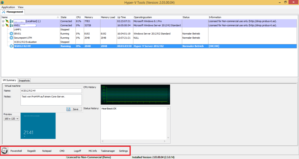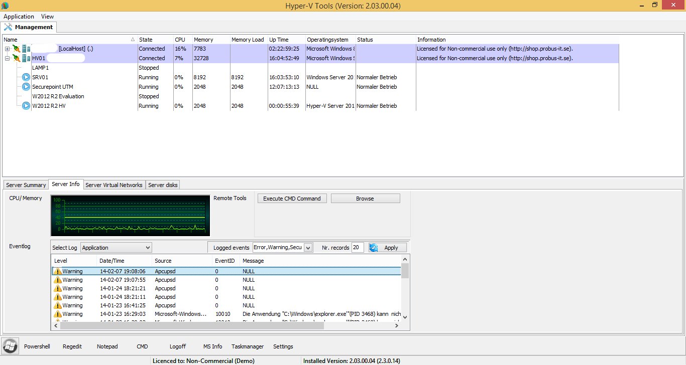 Die Anwendung ProHVM von Probus-IT ist ein alternativer Hyper-V Manager für die Verwaltung und Administration von Virtualisierungs-Hosts auf Basis von Microsofts Hyper-V. Im Gegensatz zum Hyper-V-Manager von Microsoft lässt sich dieser auch auf Core-Servern inkl. dem kostenlosen Hyper-V Server installieren und ausführen.
