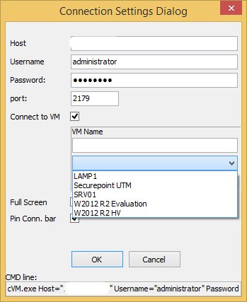 cVM.exe Host="IP-ODER-HOSTNAME" Username="administrator" Password="GEHEIM" port="3389"