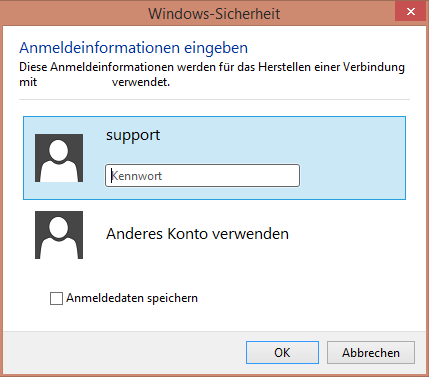 Diese sorgen dafür, das auf jeden Fall nach den Anmeldedaten gefragt wird. Der Benutzername ist dann bereits vorbelegt, so das man nur noch das Kennwort eingeben muss: