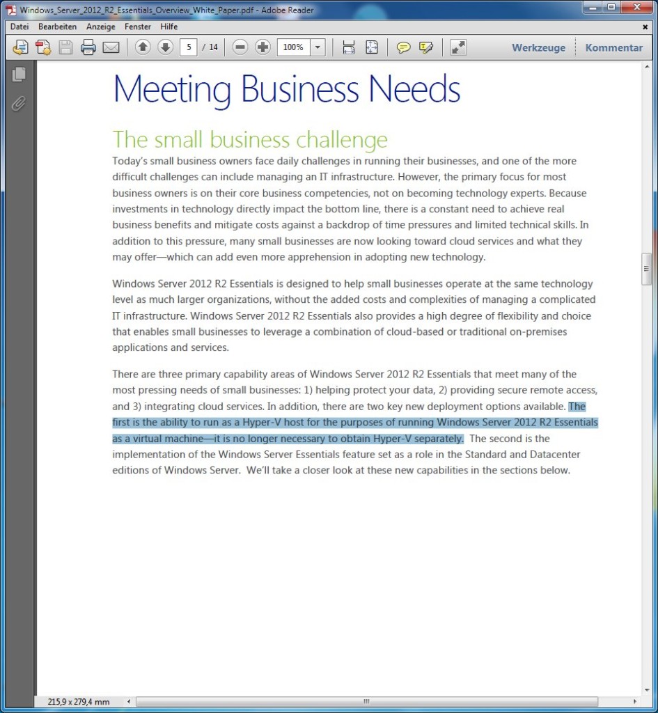 Das sind doch mal gute Neuerungen vor allem für kleine Installationen: Mit dem kommende R2 Release des Windows Server 2012 Essentials ändert Microsoft die Rechte. Zum einen darf und kann die Hyper-V Rolle installiert werden bzw. führt ein Assistent durch die Einrichtung der Virtualisierung, zum anderen darf die gleiche Lizenz unter Verwendung eines Product Keys für AVMA einmal zum Betrieb einer virtuellen Maschine verwendet werden.