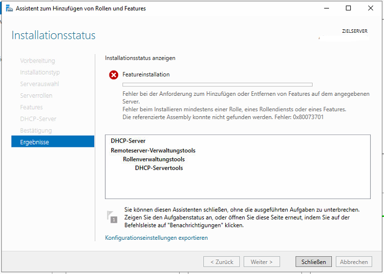 Bei einem produktiv eingesetzten Wortmann-Server mit einer Multi-Language-Vorinstallation von Windows Server 2019 Standard streikten meist die kumulativen Windows Updates, zusätzlich kam beim Versuch weitere Server-Rollen zu installieren der Fehler 0x80073701 hinzu: