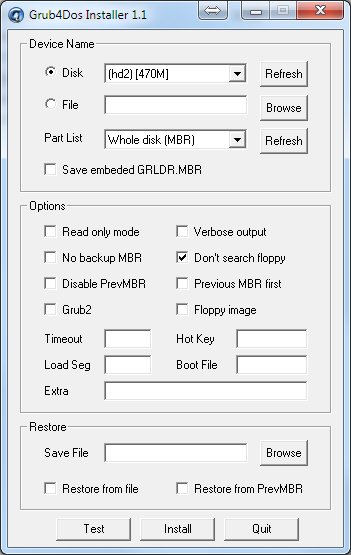 - Die aktuellen Versionen von GRUBINST und GRUB4DOS herunterladen und entpacken.