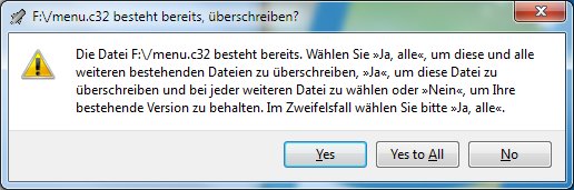 - Die Meldung über eine bereits vorhandene “menu.c32”-Datei mit “Ja” bestätigen.