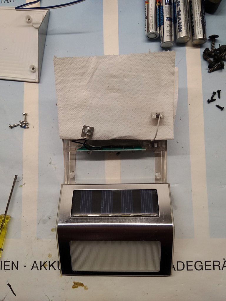 Teile der Gartenbeleuchtung wollten auch nicht mehr so recht, also abgebaut, aufgeschraubt, Akkus mal mit einem anständigen Ladegerät ent-/laden, die Solarzellen geputzt und die Kontakte gereinigt, das ist quasi schon ein alljährliches Ritual.